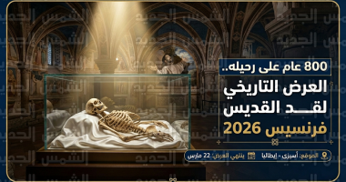 في حدث تاريخي استثنائي يشهده إقليم أومبريا الإيطالي اليوم الثلاثاء 3 مارس 2026، تستمر بازيليكا القديس فرنسيس في استقبال آلاف الزوار لمشاهدة رفات مؤسس الرهبنة الفرنسيسكانية المعروضة علنًا للمرة الأولى منذ عقود، يأتي هذا العرض تخليدًا لمرور 800 عام على وفاته (1226-2026)، وسط إجراءات تنظيمية دقيقة وتدفق سياحي عالمي غير مسبوق.