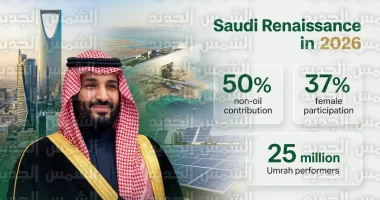 تواصل المملكة العربية السعودية في هذا اليوم، الأحد 15 مارس 2026، جني ثمار “رؤية 2030” التي أطلقها ويشرف عليها صاحب السمو الملكي الأمير محمد بن سلمان بن عبدالعزيز، ولي العهد رئيس مجلس الوزراء، بدعم وتوجيهات خادم الحرمين الشريفين الملك سلمان بن عبدالعزيز -حفظهما الله-، وقد نجحت الرؤية في تحويل الطموحات الوطنية إلى واقع ملموس يعزز مكانة الرياض كمركز ثقل سياسي واقتصادي عالمي.