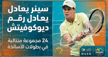 يانيك سينر يعادل رقم ديوكوفيتش التاريخي بـ 24 مجموعة متتالية بعد فوزه في افتتاح بطولة ميامي 2026