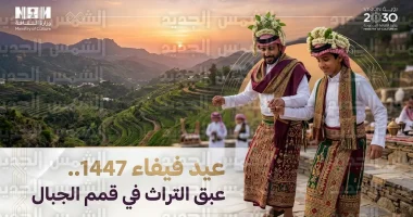يبرز “الزي الفيفاني” كأحد أهم ركائز العيد، حيث يزدان الرجال والشباب بالنباتات العطرية (مثل الكادي والبعيثران) التي تفوح شذاها في المصليات والمجالس، في مشهد يعكس التناغم بين إنسان الجبل وطبيعته الساحرة، ومع غروب شمس اليوم الرابع من شهر شوال، تصدح الميادين بأصوات الطبول التي تمتزج مع الأهازيج، مؤكدة على صمود هذا التراث وازدهاره في ظل الرعاية الكريمة التي يحظى بها القطاع الثقافي في المملكة.
