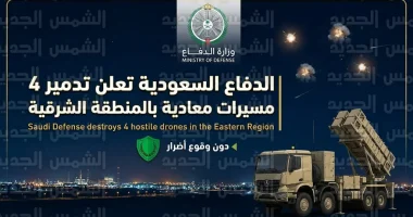 الدفاع السعودية تعلن تدمير 4 طائرات مسيرة استهدفت الأعيان المدنية والمنشآت الاقتصادية بالمنطقة الشرقية