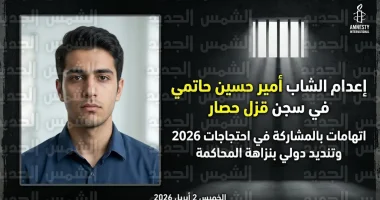 أعلنت السلطة القضائية الإيرانية، اليوم الخميس 2 أبريل 2026، عن تنفيذ حكم الإعدام بحق الشاب “أمير حسين حاتمي” (18 عاماً)، وذلك في سجن “قزل حصار”، ويأتي هذا الإجراء على خلفية اتهامات تتعلق بالمشاركة في الاضطرابات والاحتجاجات التي شهدتها البلاد مطلع العام الجاري 2026، وسط انتقادات حقوقية دولية حادة حول نزاهة الإجراءات القانونية المتبعة.