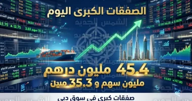 وفي قطاع العقارات، شهد سهم شركة “الاتحاد العقارية” تنفيذ صفقة كبيرة بقيمة 10.3 مليون درهم، وتمت العملية بسعر تنفيذ بلغ 0.71 درهم للسهم، من خلال تداول 14.5 مليون سهم من أسهم الشركة.