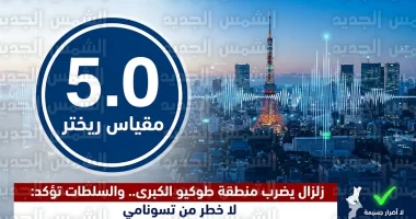 تعرضت منطقة طوكيو الكبرى في اليابان، صباح اليوم السبت 4 أبريل 2026، لهزة أرضية بلغت قوتها 5 درجات على مقياس ريختر، مما أدى إلى اهتزاز المباني في العاصمة والمناطق المحيطة بها، وسط استنفار من أجهزة الرصد لمتابعة التداعيات اللحظية للنشاط الزلزالي.
