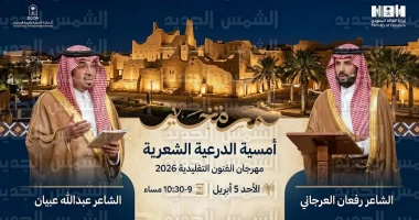 تتجه أنظار محبي الأدب والشعر الشعبي في المملكة العربية السعودية، مساء اليوم الأحد 5 أبريل 2026، نحو ميادين الدرعية التاريخية، حيث تُقام تظاهرة أدبية وثقافية كبرى يحييها الشاعر عبدالله عبيان، نائب رئيس تحرير صحيفة «عكاظ»، بمشاركة الشاعر رفعان العرجاني، وتأتي هذه الأمسية كأحد أبرز المحطات الثقافية ضمن أجندة “مهرجان الفنون التقليدية 2026” الذي يحتفي بالهوية الوطنية والتراث العريق.