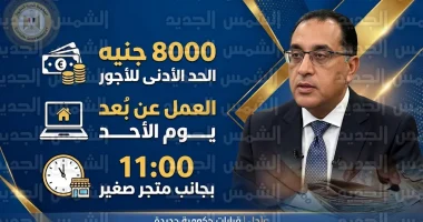 - الحد الأدنى للأجور: تقرر رسمياً رفع الحد الأدنى لرواتب العاملين في القطاع الحكومي ليصل إلى 8000 جنيه مصري، لمواجهة التحديات الاقتصادية الراهنة.