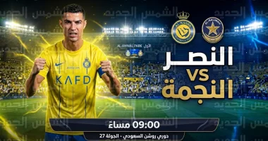 تقرر إقامة مواجهة النصر والنجمة ضمن منافسات الجولة الـ27 من دوري روشن السعودي للمحترفين، اليوم الأحد الموافق 5-4-2026، حيث تنطلق صافرة البداية في تمام الساعة التاسعة مساءً بتوقيت مكة المكرمة والقاهرة، العاشرة مساءً بتوقيت أبوظبي.