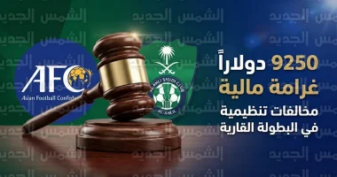 أصدرت لجنة الانضباط والأخلاق بالاتحاد الآسيوي لكرة القدم، اليوم الأحد 5 أبريل 2026 (الموافق 17 شوال 1447 هـ)، قراراً رسمياً بفرض غرامة مالية على النادي الأهلي السعودي قدرها 9250 دولاراً، وذلك نتيجة رصد تجاوزات تنظيمية وقعت خلال إحدى مباريات الفريق في البطولة القارية للموسم الحالي 2026.