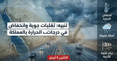 طقس السعودية اليوم الاثنين 6 أبريل يشهد تقلبات جوية وأمطاراً وانخفاضاً ملموساً في درجات الحرارة