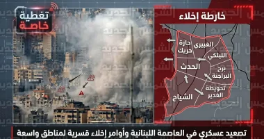 في تطور ميداني متسارع، جدد الجيش الإسرائيلي اليوم الاثنين إنذاراته لسكان الضاحية الجنوبية لبيروت، مطالباً بالإخلاء الفوري والابتعاد لمسافة لا تقل عن 500 متر عن المباني المحددة في الخرائط المنشورة، وتشمل الأحياء المهددة بالاستهداف: