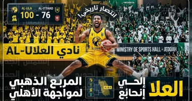 نجح الفريق الأول لكرة السلة بنادي العلا في حجز بطاقة التأهل الرسمية إلى المباراة النهائية لبطولة المربع الذهبي لكرة السلة لعام 2026 (1447 هـ)، وذلك بعد تحقيقه فوزاً عريضاً على نظيره نادي الاتحاد بنتيجة (100-76)، أقيمت المواجهة مساء اليوم الاثنين 6 أبريل 2026، على صالة وزارة الرياضة بمحافظة جدة، وسط حضور جماهيري لافت ومستويات فنية متصاعدة من جانب فريق العلا.