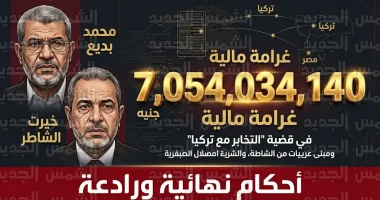 أصدرت محكمة جنايات أمن الدولة العليا في مصر، اليوم الثلاثاء 7 أبريل 2026، أحكاماً قضائية مشددة ونهائية في القضية المعروفة إعلامياً بـ “قضية التخابر مع الخارج”، والتي شملت قيادات الصف الأول في تنظيم الإخوان، وتضمن الحكم عقوبات بدنية رادعة وإجراءات مالية هي الأضخم من نوعها ضد التنظيم، لتقويض بنيته التحتية ومنع محاولات المساس بالأمن القومي المصري.