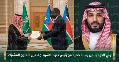 ولي العهد يتلقى رسالة خطية من رئيس جنوب السودان لتعزيز العلاقات الثنائية وتطوير التعاون المشترك