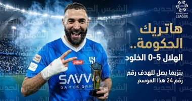 شهدت ملاعب دوري روشن السعودي للمحترفين ليلة تاريخية بطلها النجم الفرنسي كريم بنزيما، الذي قاد فريقه الهلال لاكتساح نظيره الخلود بنتيجة عريضة (5-0)، في اللقاء الذي جمع بينهما اليوم الأربعاء 8 أبريل 2026، ضمن منافسات الجولة التاسعة والعشرين من المسابقة.