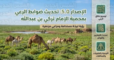 أصدرت هيئة تطوير محمية الإمام تركي بن عبدالله الملكية، اليوم الخميس 9 أبريل 2026 (الموافق 22 شوال 1447 هـ)، تحديثات شاملة ضمن الإصدار الخامس (5.0) لضوابط تنظيم الرعي داخل نطاق المحمية، وتأتي هذه الخطوة في إطار جهود المملكة المستمرة لتنمية الغطاء النباتي وتحقيق التوازن البيئي، مع تمكين المجتمع المحلي من الاستفادة من الموارد الطبيعية بشكل منظم ومستدام.