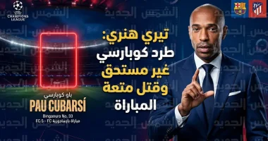 انتقد الأسطورة الفرنسية تيري هنري، نجم برشلونة السابق، بشدة قرار طرد المدافع الشاب باو كوبارسي خلال مواجهة “البلاوغرانا” أمام أتلتيكو مدريد، والتي أقيمت مساء أمس الأربعاء 8 أبريل 2026، ضمن منافسات ذهاب ربع نهائي دوري أبطال أوروبا، ووصف هنري القرار بأنه “تسرع تحكيمي” أفسد متعة المباراة وأثر بشكل مباشر على نتيجتها النهائية.