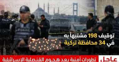 شنت السلطات الأمنية التركية حملة مداهمات واسعة النطاق شملت عشرات الولايات، وأسفرت عن توقيف 198 شخصاً للاشتباه في صلتهم بتنظيمات إرهابية، وذلك في أعقاب الهجوم المسلح الذي استهدف محيط القنصلية الإسرائيلية في مدينة إسطنبول مطلع الأسبوع الحالي.