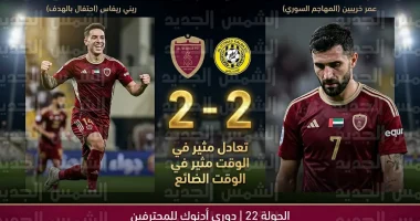 انتهت المباراة بالتعادل الإيجابي بنتيجة 2-2، ضمن الجولة 22 من الدوري الإماراتي.