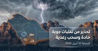 حالة الطقس في السعودية اليوم الجمعة 10-4-2026: تحذير من تقلبات جوية حادة وأمطار رعدية