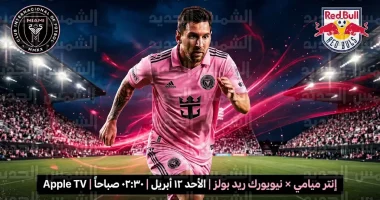 | إنتر ميامي × نيويورك ريد بولز | الأحد 12 أبريل – 02:30 صباحاً | ملعب نو | تطبيق Apple TV |