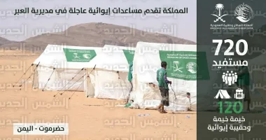 شملت المساعدات التي قدمها المركز تسليم 120 خيمة و120 حقيبة إيوائية متكاملة للأسر الأكثر احتياجاً في مديرية العبر بمحافظة حضرموت، وتهدف هذه الحقائب إلى تأمين المتطلبات الأساسية للسكن، بما يضمن حماية الأسر من التقلبات المناخية وتوفير بيئة معيشية آمنة للنازحين الذين فقدوا ممتلكاتهم نتيجة الأزمات المتعاقبة.