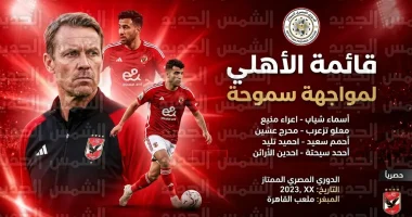 أعلن الجهاز الفني للفريق الأول لكرة القدم بالنادي الأهلي، بقيادة الدنماركي ييس توروب، القائمة الرسمية التي ستخوض مواجهة سموحة المرتقبة، والمقرر إقامتها غداً السبت ضمن منافسات الجولة الثانية من “مجموعة التتويج” في المرحلة الحاسمة للدوري المصري الممتاز لعام 2026.