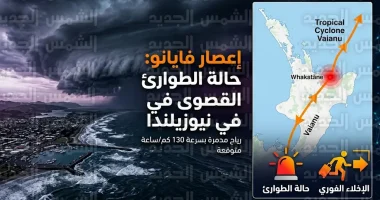 رفعت السلطات النيوزيلندية اليوم السبت 11 أبريل 2026 درجة الاستعداد إلى الحالة القصوى، حيث بدأت عمليات إخلاء واسعة لآلاف السكان في المناطق الساحلية بالجزيرة الشمالية، يأتي هذا الإجراء الاستباقي مع اقتراب إعصار “فايانو” (Vaianu)، وسط مخاوف رسمية من وصول سرعة الرياح إلى مستويات كارثية تهدد البنية التحتية والأرواح.