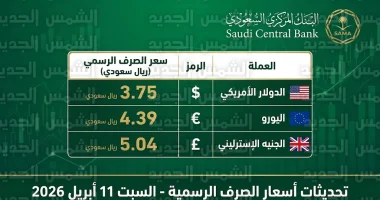 أظهرت أحدث بيانات التداول الصادرة عن البنك المركزي السعودي (ساما) اليوم السبت 11 أبريل 2026، الموافق 23 شوال 1447هـ، استقراراً ملحوظاً في سعر صرف الريال السعودي مقابل الدولار الأمريكي والعملات الأجنبية الرئيسية، يأتي هذا الثبات تزامناً مع الإغلاق الأسبوعي للأسواق العالمية، حيث حافظ الريال على مستوياته التاريخية المدعومة بسياسة الربط النقدي.