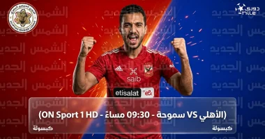 تعتبر شبكة قنوات “أون سبورت” (ON Sports) هي الناقل الحصري والوحيد لمباريات الدوري المصري الممتاز في منطقة الشرق الأوسط وشمال إفريقيا، وقد خصصت الشبكة قناة ON Sport 1 HD لنقل أحداث مباراة الأهلي وسموحة اليوم، مع وجود استوديو تحليلي يضم نخبة من نجوم الكرة المصرية قبل انطلاق اللقاء بقرابة الساعة.