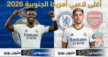 فينيسيوس جونيور يتربع على عرش أغلى لاعبي أمريكا الجنوبية لعام 2026 وسيطرة مطلقة لريال مدريد
