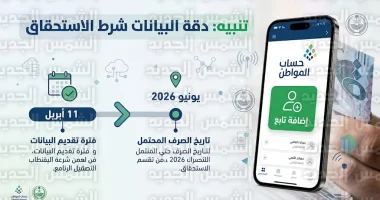 أكد برنامج “حساب المواطن” اليوم، السبت 11 أبريل 2026، على الأهمية القصوى لدقة البيانات المسجلة في البوابة الإلكترونية، مشدداً على ضرورة وجود توافق تام في أعداد وبيانات التابعين بين ما هو مسجل في البرنامج وبين أنظمة الضمان الاجتماعي المطور والجهات الحكومية ذات العلاقة، وأوضح البرنامج أن أي اختلاف في المعلومات المفصح عنها قد يؤدي إلى عدم مطابقة البيانات، مما يؤثر بشكل مباشر على نتيجة “الأهلية” وقيمة الاستحقاق الشهري للمستفيد الرئيسي.