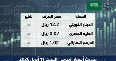 شهدت أسعار صرف الريال السعودي مقابل الجنيه المصري وسلة العملات العربية استقراراً ملحوظاً في التداولات المصرفية اليوم السبت 11 أبريل 2026، الموافق 23 شوال 1447هـ، وأظهرت البيانات الصادرة عن البنك المركزي السعودي (ساما) ثباتاً في المراكز السعرية للعملات دون تغييرات جوهرية مقارنة بالإغلاقات الأخيرة.