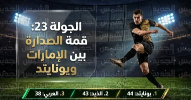 يدخل فريق “يونايتد” منافسات اليوم وهو يتربع على قمة الترتيب برصيد 44 نقطة، مع أفضلية امتلاكه مباراة مؤجلة أمام حتا، مما يجعله المرشح الأقوى نظرياً لخطف بطاقة الصعود الأولى، وفي المقابل، يشتعل الصراع خلفه على النحو التالي: