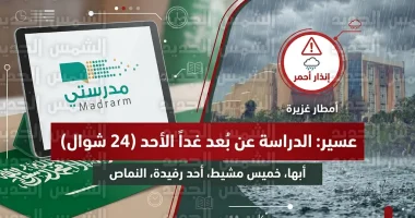 تعليق الدراسة الحضورية في عسير غداً الأحد 24 شوال 1447 وتحويلها عن بُعد عبر منصة مدرستي