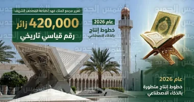 أعلن مجمع الملك فهد لطباعة المصحف الشريف بالمدينة المنورة اليوم الأحد، 12 أبريل 2026 (الموافق 25 شوال 1447 هـ)، عن تحقيق طفرة قياسية في أعداد الزوار، حيث استقبل المجمع ما يزيد عن 420 ألف زائر خلال الأشهر الثلاثة الأولى من عام 2026 (الربع الأول)، ويعد هذا الرقم هو الأعلى في تاريخ المجمع منذ افتتاحه، مما يعكس الجهود الكبيرة في تطوير الخدمات اللوجستية والمعرفية المقدمة لضيوف الرحمن.