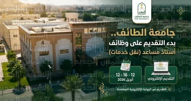أعلنت إدارة جامعة الطائف، اليوم الأحد 12 أبريل 2026، عن فتح باب التقديم لشغل وظائف أكاديمية شاغرة برتبة (أستاذ مساعد) للسعوديين والسعوديات، وذلك عبر نظام “نقل الخدمات” من الجهات الحكومية أو الجامعات الأخرى، تأتي هذه الخطوة لتعزيز الكوادر الأكاديمية في الجامعة بما يتوافق مع الاحتياجات التعليمية للعام الجامعي القادم 1447-1448هـ.
