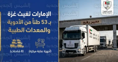 وصول قافلة مساعدات طبية إماراتية ضخمة بوزن 53 طناً إلى قطاع غزة ضمن عملية الفارس الشهم 3