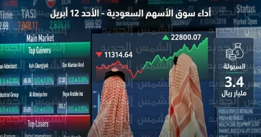 أنهى مؤشر الأسهم السعودية الرئيس (تاسي) تعاملاته اليوم الأحد 12 أبريل 2026 (الموافق 25 شوال 1447 هـ) بتراجع طفيف، حيث استقر عند مستوى 11314.64 نقطة، فاقداً 28.53 نقطة من قيمته، وشهدت الجلسة تداولات بلغت قيمتها الإجمالية 3.4 مليار ريال، توزعت على كمية أسهم متداولة بلغت 224 مليون سهم عبر تنفيذ صفقات متنوعة.