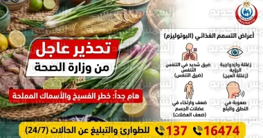 أصدرت وزارة الصحة والسكان المصرية بياناً عاجلاً يتضمن حزمة من الإرشادات الوقائية تزامناً مع احتفالات “شم النسيم” التي تحل غداً الاثنين 13 أبريل 2026، وشددت الوزارة في بيانها على مخاطر تناول الأسماك المملحة (كالفسيخ والرنجة) مجهولة المصدر، محذرة من احتمالية الإصابة بتسمم غذائي حاد يُعرف بـ “البوتيوليزم”، والذي قد يهدد حياة المواطنين في حال عدم التدخل الطبي السريع.