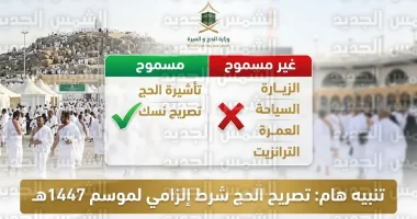أكدت وزارة الحج والعمرة السعودية، اليوم الأحد 12 أبريل 2026، أن “تصريح الحج” يعد شرطاً إلزامياً وأساسياً لا يمكن التنازل عنه لدخول المشاعر المقدسة وأداء مناسك الحج لموسم 1447هـ، وأوضحت الوزارة في بيان رسمي أن الأنظمة المتبعة في المملكة تمنع دخول أي شخص للمشاعر المقدسة دون الحصول على التصريح المسبق، وذلك لضمان سلامة الحجيج وتنظيم الحشود وفق المعايير المعتمدة.