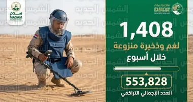 تجاوز إجمالي الألغام والذخائر المنزوعة حاجز 553,828 قطعة منذ بداية المشروع وحتى منتصف أبريل 2026.