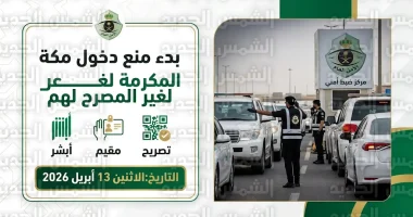 منع دخول المقيمين غير الحاملين لتصاريح إلى مكة المكرمة اعتباراً من غد الاثنين 13 أبريل 2026
