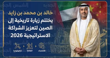 أنهى سمو الشيخ خالد بن محمد بن زايد آل نهيان، ولي عهد أبوظبي، اليوم الثلاثاء 14 أبريل 2026 (الموافق 26 شوال 1447 هـ)، زيارته الرسمية إلى جمهورية الصين الشعبية، وقد جاءت هذه الزيارة في إطار سعي دولة الإمارات العربية المتحدة لتمتين جسور التعاون الاستراتيجي مع بكين، وتفعيل مسارات العمل المشترك في المجالات الاقتصادية والتنموية بما يخدم التوجهات المستقبلية للبلدين الصديقين.