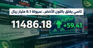 | مؤشر “تاسي” الرئيسي | 11486.18 نقطة | +59.41 (ارتفاع) | 6.1 مليار |
