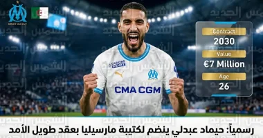 تلقى الدولي الجزائري حيماد عبدلي، صانع ألعاب نادي مارسيليا الفرنسي، دفعة معنوية كبرى اليوم الأربعاء 15 أبريل 2026 (الموافق 27 شوال 1447 هـ)، بعدما حسمت إدارة “فيلودروم” موقفها النهائي بشأن مستقبل اللاعب الذي انضم للفريق في ميركاتو الشتاء الماضي قادماً من أنجيه.