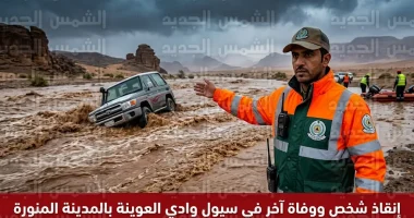 أعلنت المديرية العامة للدفاع المدني في المملكة العربية السعودية، اليوم الأربعاء 15 أبريل 2026 (الموافق 27 شوال 1447 هـ)، عن مباشرة فرقها الميدانية في منطقة المدينة المنورة لحادثة انجراف مركبة نتيجة تدفق السيول في “وادي العوينة”، وأسفرت عمليات الاستجابة السريعة عن إنقاذ شخص واحد، فيما جرى انتشال شخص آخر كان قد فارق الحياة، سائلين المولى عز وجل أن يتغمده بواسع رحمته ومغفرته.