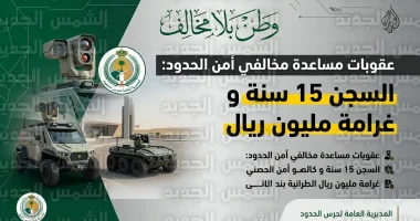 جددت المديرية العامة لحرس الحدود تحذيراتها الصارمة من تقديم أي نوع من المساعدة للمخالفين، وأكدت أن القانون السعودي يفرض عقوبات مغلظة تصل إلى: