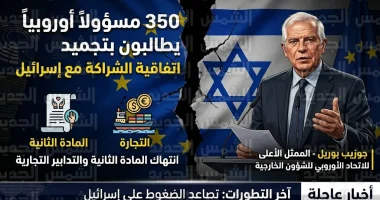 في خطوة تصعيدية تعكس حجم الضغوط السياسية المتزايدة داخل القارة العجوز، طالب أكثر من 350 مسؤولاً أوروبياً سابقاً -بينهم وزراء وسفراء وكبار موظفي الاتحاد الأوروبي- اليوم الخميس 16 أبريل 2026، بالتعليق الفوري لاتفاقية الشراكة الموقعة بين الاتحاد الأوروبي وإسرائيل، وجاء هذا التحرك عبر رسالة مفتوحة حذرت من التبعات القانونية والأخلاقية لاستمرار هذه الاتفاقية في ظل التقارير المستمرة حول الانتهاكات الجسيمة لحقوق الإنسان.