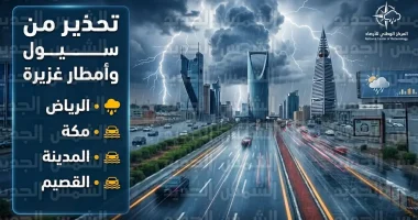 حالة الطقس في السعودية اليوم الخميس 16 أبريل 2026 وتحذيرات من أمطار غزيرة وسيول في الرياض ومكة والمدينة