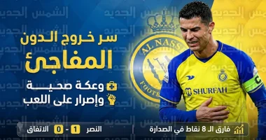 • النصر يعزز صدارته لدوري روشن بفارق 8 نقاط بعد حسم موقعة الاتفاق بهدف نظيف.